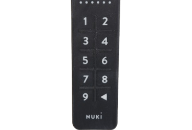 Am Türrahmen der Wohnungstür findest du das Keypad zur Eingabe des Codes, die Tür öffnet dann automatisch.