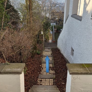 Folge den Stufen weiter bis zur Hauseingangstür. Die Tür sollte immer aufgeschlossen sein. Gehe durch die Haustür hinein, du befindest dich im 3. OG: