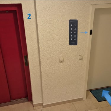 Du befindest dich vor dem Eingang zur Wohnung, gebe hier nun deinen Zutrittscode ein. Wir wünschen dir einen angenehmen Aufenthalt!