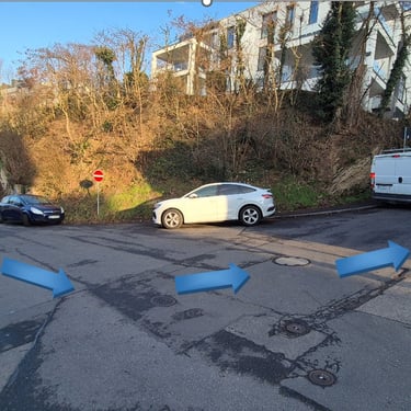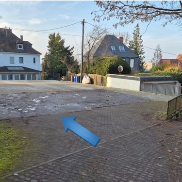 Nun geht es immer weiter geradeaus, kurz vor dem Ende des Weges siehst du links den Parkplatz, stelle dein Fahrzeug bitte hier ab: