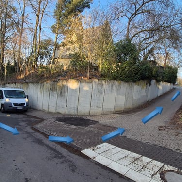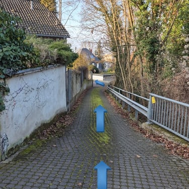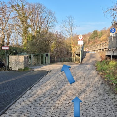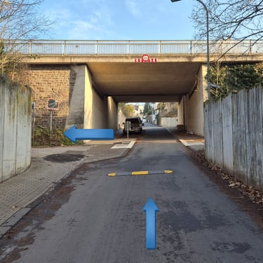 Sobald du am Haus vorbeifährst, biege ca. 100m weiter nach links ab in die "Ellingshohl". Du fährst nun den Berg weiter hoch, direkt vor der Unterführung musst du wieder links abbiegen: