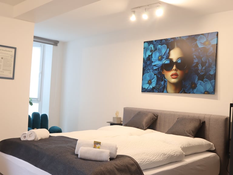 Im Apartment steht dir ein bequemes 160x200 Kingsize-Boxspringbett für einen erholsamen Schlaf zur Verfügung.